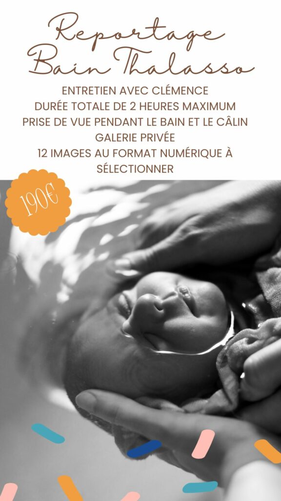 Je travaille en collaboration avec Clémence de Saint Steban, accompagnante périnatale qui pratique le bain thérapeutique à la MaisonNée à l’Isle d’Abeau. Clémence est formidable, elle pratique le bain thérapeutique avec patience, douceur et bienveillance. Je me sens très chanceuse de pouvoir partager la magie de ces bains en sa compagnie.